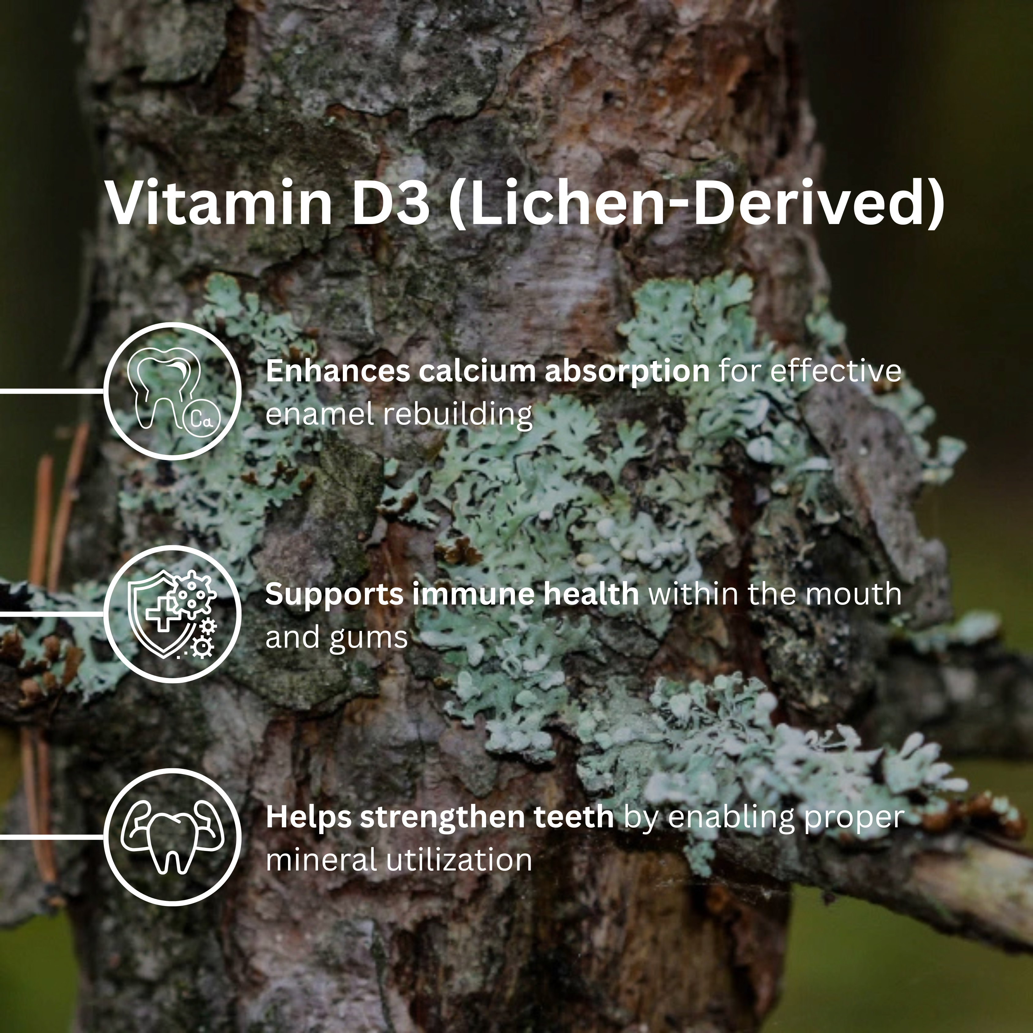 - Vitamin D3 + K2 to support calcium absorption and remineralization
