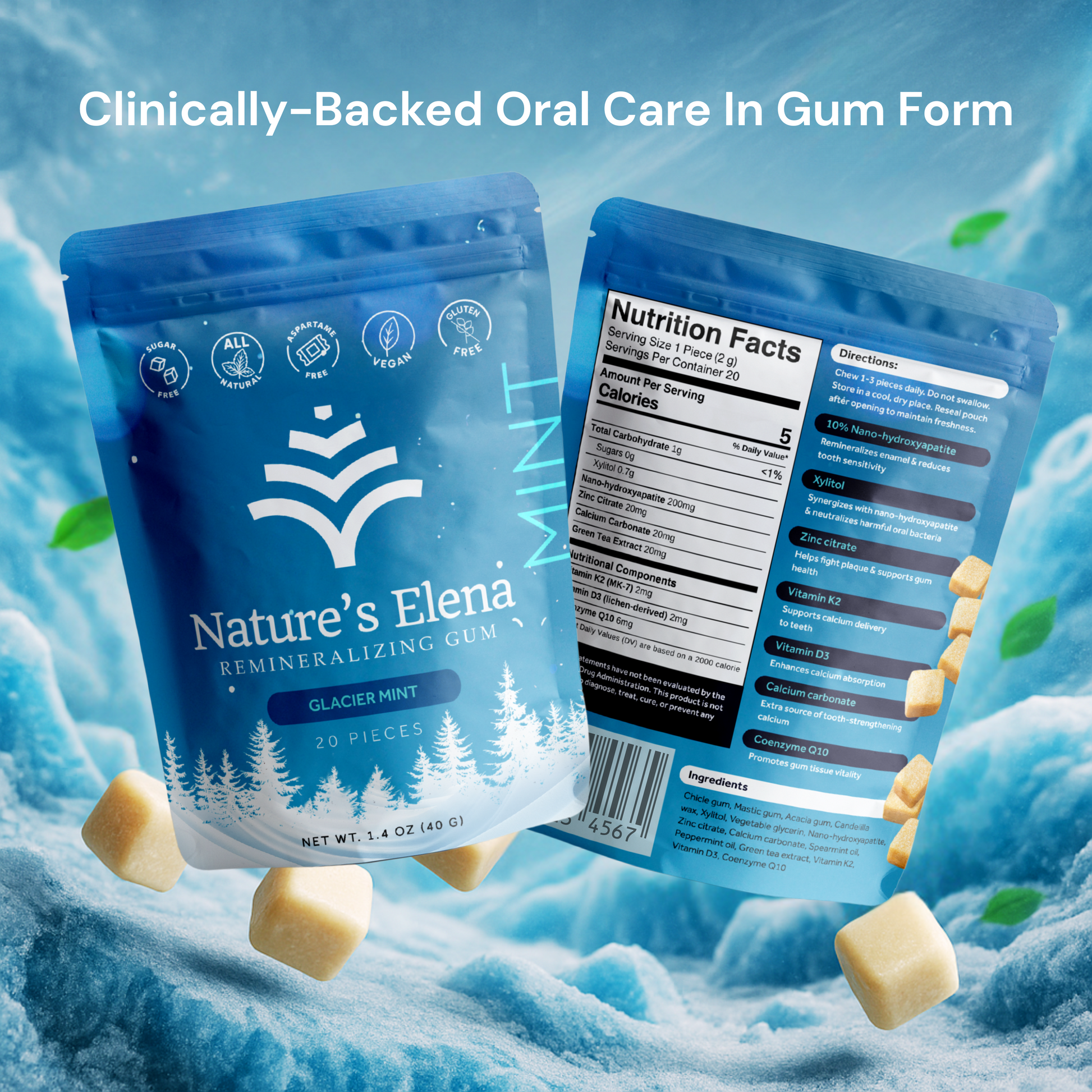 Nature’s Elena Remineralizing Gum isn’t your typical chewing gum — it’s a science-backed oral health tool made with clinically supported ingredients.